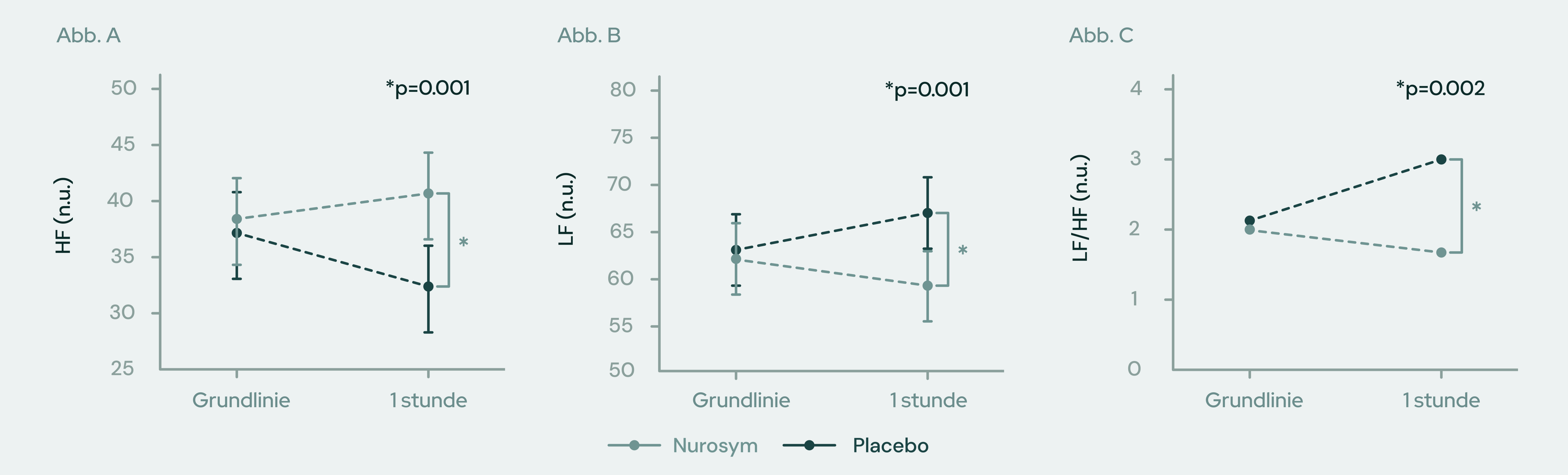 Eine einzelne einstündige Sitzung mit Nurosym zeigte in kontrollierten Studien positive Effekte auf wichtige Parameter der Herzfrequenzvariabilität (HRV).