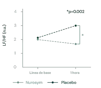 *En un ensayo clínico, una sesión de una hora con Nurosym modificó favorablemente todos los parámetros de la variabilidad de la frecuencia cardíaca (VFC) en comparación con un placebo. La VFC indica la activación de los mecanismos psicofisiológicos de autorreparación.