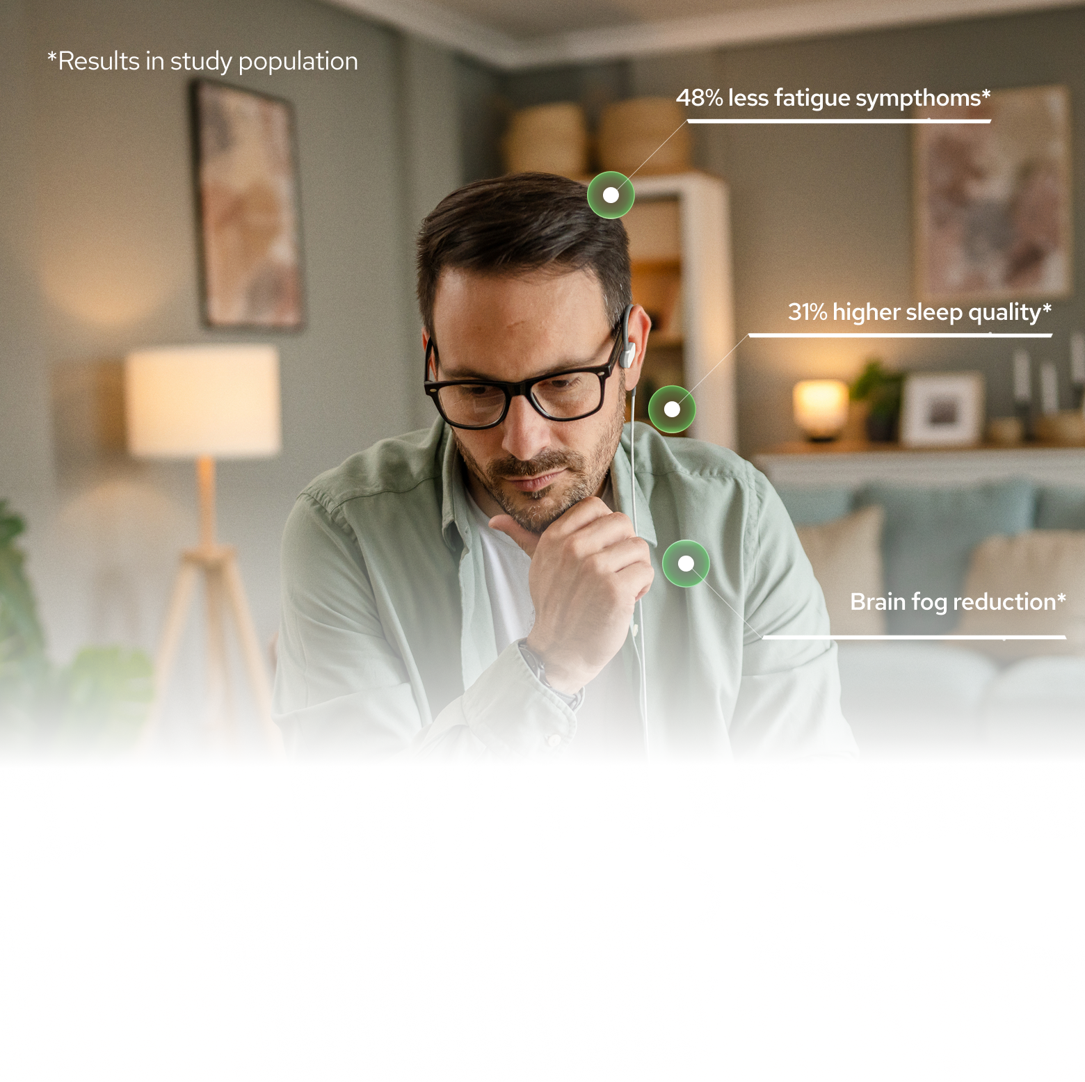 Nurosym helps counter persistent fatigue symptoms by activating the vagus nerve via targeted bioelectric signals that rewire your brain to repair your nervous system. Start your recovery with neuromodulation.