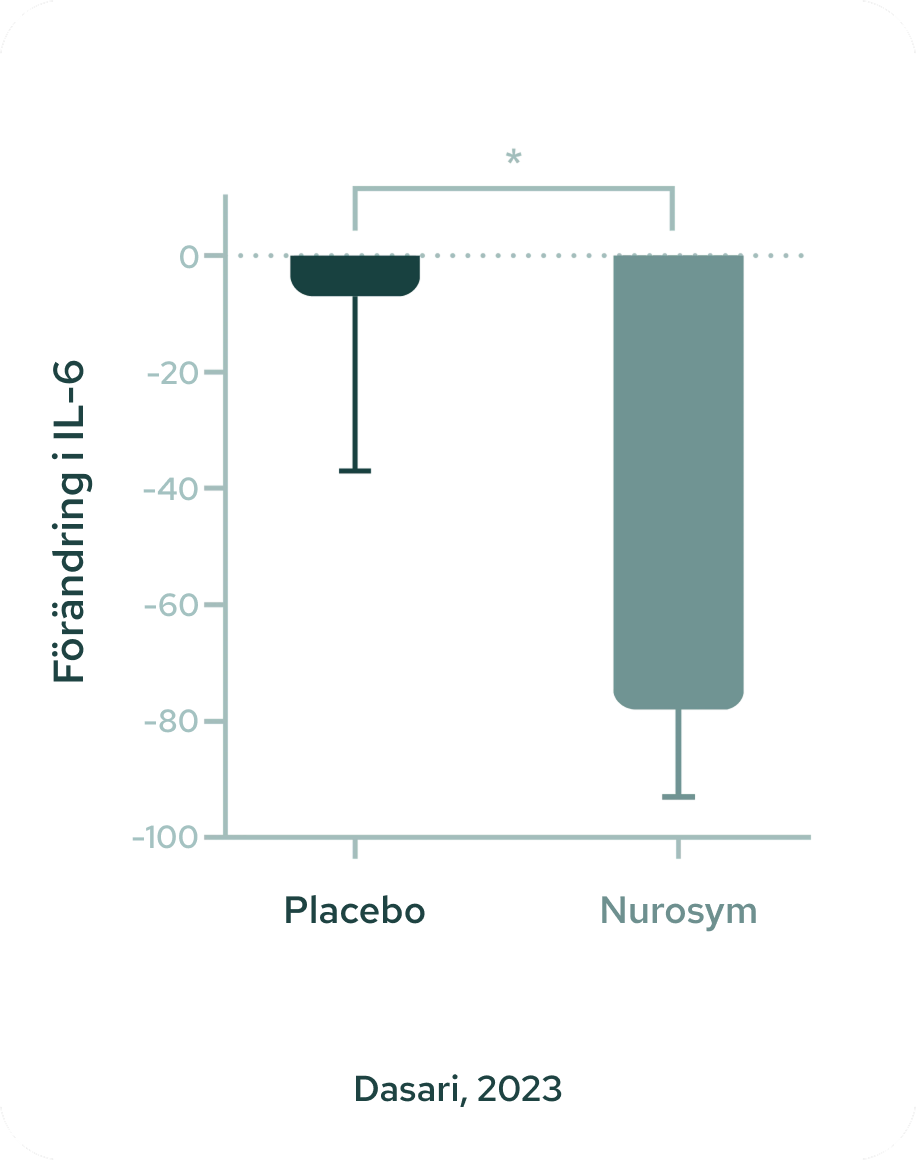78 % minskning av skadliga IL‑6‑cytokiner (Dasari 2023)